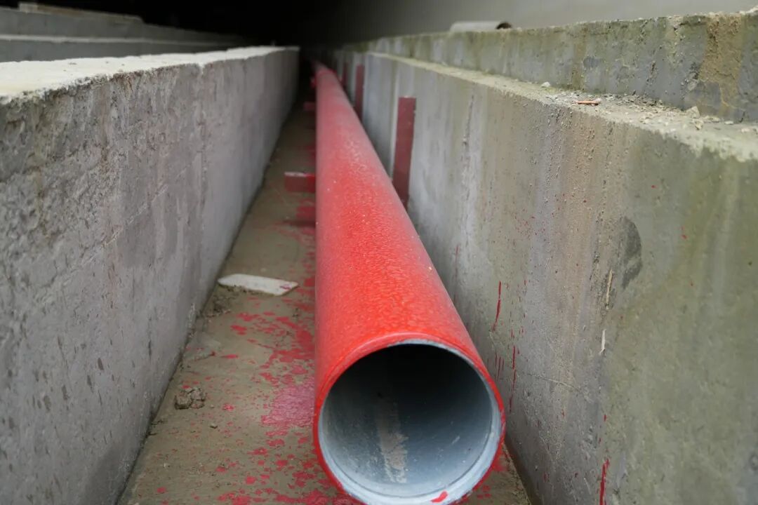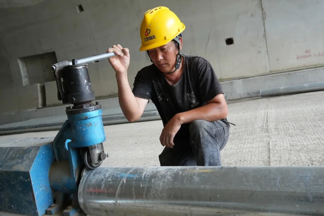 在长494米的隧道内,施工人员正进行照明、通风、消防、监控等机电系统的安装。并同步进行消防管网的铺设,为灭火器、消防栓等设备安装做足准备,为隧道安全运营筑牢安全防线。