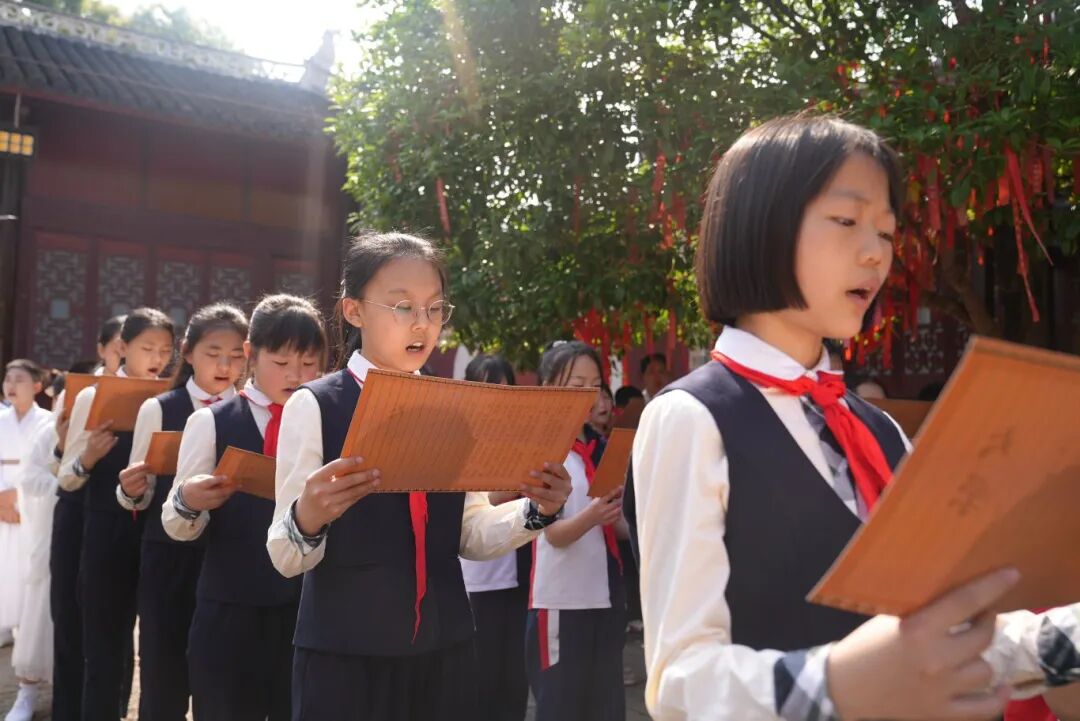 活动现场,来自思南县第一小学、第二小学、思中初级中学、旷继勋小学的学生们带来精彩阅读分享展演。他们围绕传统文化、经典古诗词、孝道文化与红色文化,或激情澎湃,或娓娓道来,在分享中碰撞思维火花,拓宽阅读视野,展现出思南学子对知识的渴望与热爱。活动尾声,在主持人的领读下,全场齐声诵读《大学》经典章节。朗朗书声,穿越古今,大家在国学经典中汲取智慧,感悟成长。
