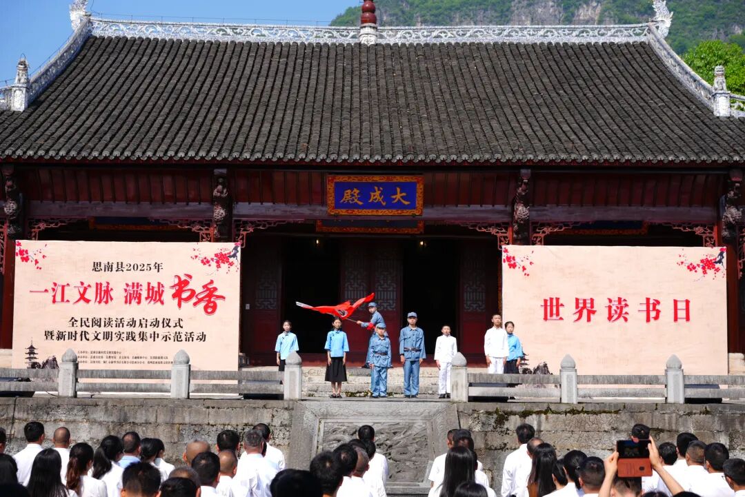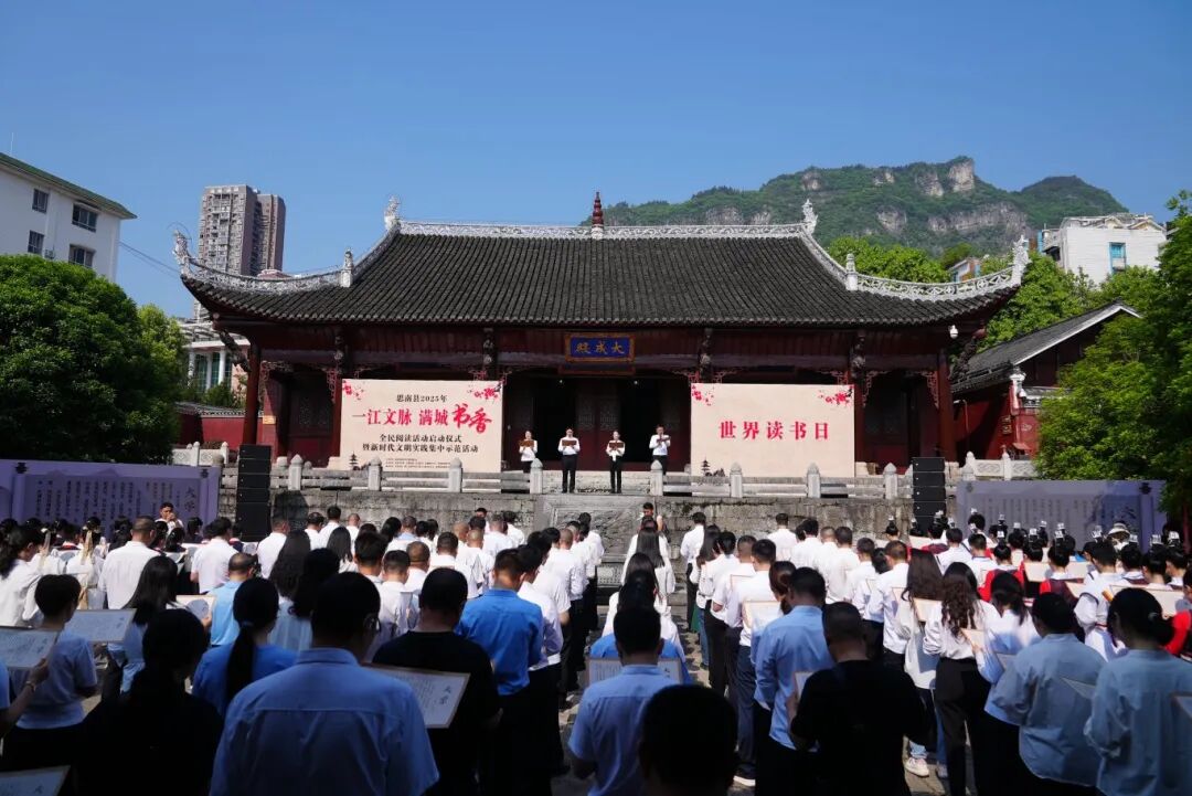 人间四月芳菲尽,正是阅读好时节。4月21日上午,在第30个“世界读书日”到来之际,思南县2025年“一江文脉·满城书香”全民阅读活动启动仪式在府文庙举行。通过搭建多元化文化活动阵地,推动全民阅读活动纵深发展,倡导大家热爱阅读、传承文脉,共同建设“书香思南”。