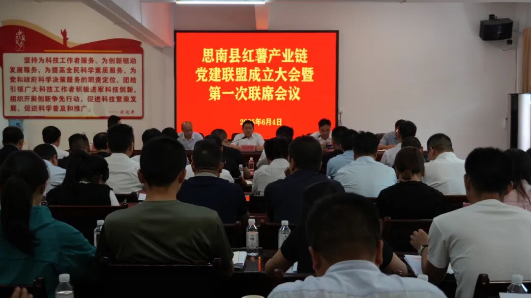 会上,宣读了《思南县产业链党建联盟促“强村富民”15条措施》《关于成立思南县红薯产业链党建联盟的通知》;介绍了贵州佳里佳农业发展有限公司发展情况;县红薯产业专班通报了全县“双高”红薯产业链发展情况;联盟成员单位共同签订了党建联盟共建协议;联盟成员单位代表作了交流发言。