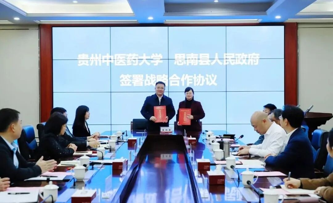 4月9日下午,思南县人民政府与贵州中医药大学战略合作协议签约仪式在花溪校区学术交流中心会议室举行。标志着双方在民族医药研究、医疗资源共享、成果转化、专科建设、人才培养等领域的深度合作正式开启,校地合作进入全方位、多层次、宽领域的新阶段。