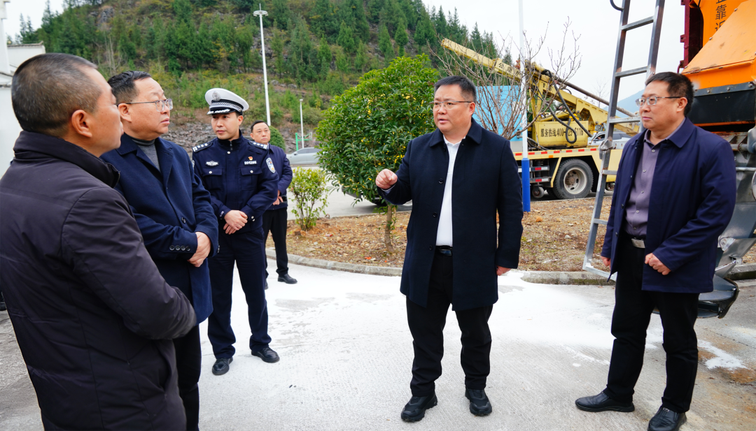 在调研点位,陈浩详细查看易凝冻路段路面状况、应急物资储备、监测设备运行情况;仔细询问道路结冰处置流程、公共出行工具运营安全保障及服务区车流疏导等工作详情。