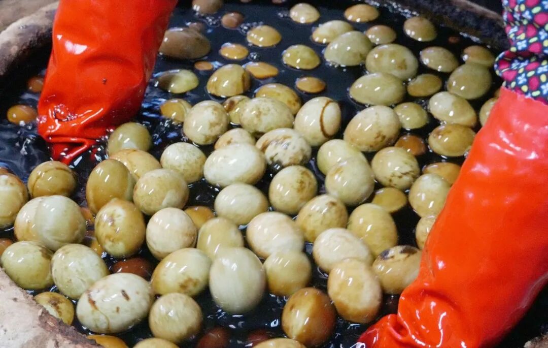 皮蛋是很多中国人的心头好,无论是凉拌皮蛋,还是皮蛋瘦肉粥都是一番别有的风味;新鲜的鸭蛋经过在中药泡池里3个月的浸泡、悬浮、翻转、发酵一系列化学反应后,时间一到,取出、上泥、静置,一气呵成,耐心的再等待10-20天,一枚富含营养的中药皮蛋就加工完成。