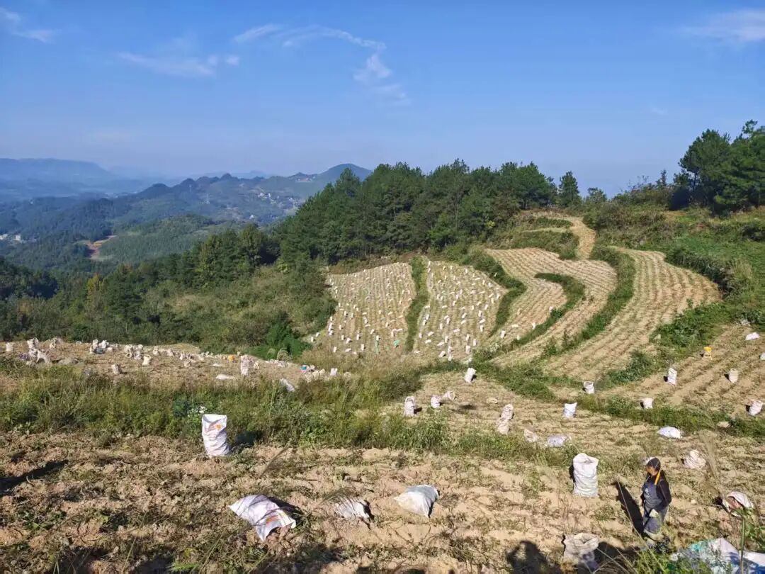 土地盘活后,如何实现效益最大化?尖峰村与种植大户共同探索,因地制宜调整产业结构。前两年,根据土壤特性和市场需求,优先发展烤烟种植,通过标准化管理、精细化烘烤,不仅实现了当年投产、当年见效,还为村集体带来了稳定的土地租金收入。2025年,为进一步优化产业布局,大户在总结经验的基础上,将种植重点转向市场前景更广的红薯产业。红薯适应性强、产量高、加工链条长,从鲜食到薯粉、薯条等深加工产品,都能带来可观收益。“红薯种植周期短、风险低,而且我们有无人机帮忙,管理起来更高效,预计亩产能达6000斤以上!”种植大户佘老板信心满满地说。