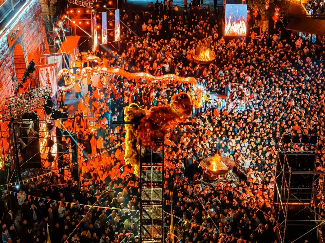 秦家寨村拥有一项传承百年的文化瑰宝——省级非物质文化遗产魁榜醒狮。这项独具特色的民俗表演距今已有160余年历史,由当地先辈秦魁榜(又名秦黑胡子)独创,以惊险刺激的“爬龙台”表演为核心技艺,曾是为皇城增添喜庆氛围的特色节目。