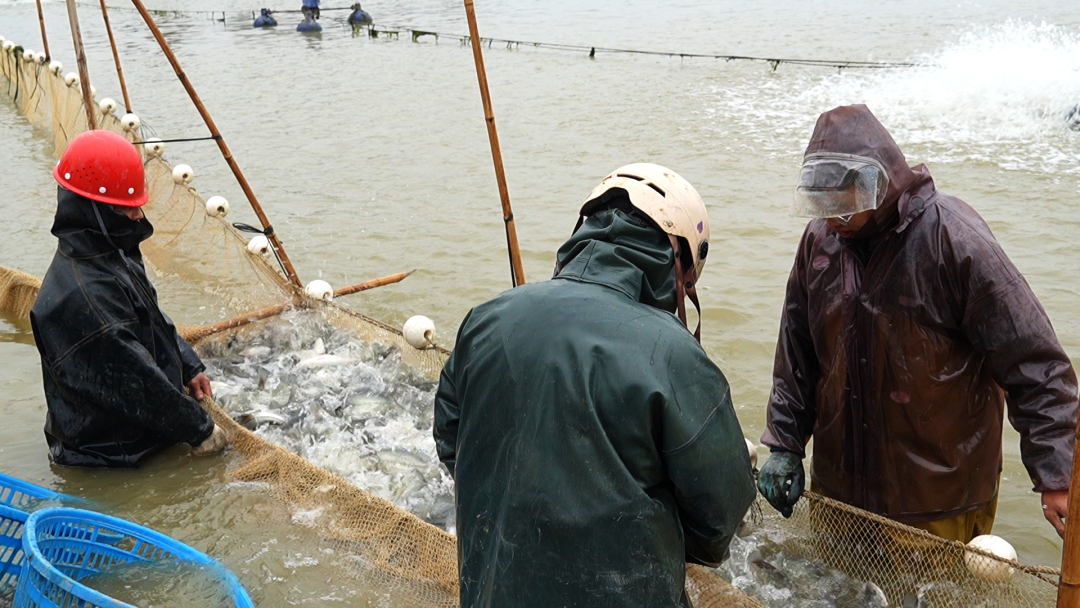 走进贵州江上渔业有限公司鲈鱼养殖基地,只见26口池塘里波光粼粼,水面上渔船往来穿梭,渔民们正紧锣密鼓地捕捞,大家分工协作,下网、拉网一气呵成。随着沉甸甸的渔网缓缓收紧,一条条鲈鱼在网中翻腾跳跃,激起阵阵浪花,伴着渔民们的欢声笑语,呈现出鱼跃人欢的丰收图景。