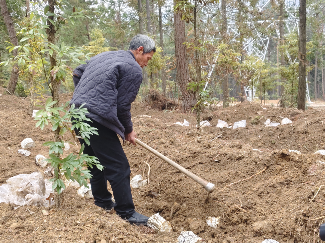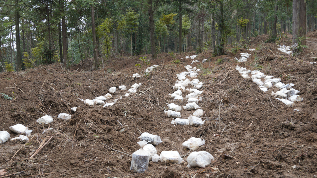 “土只能覆三公分深。”龙泉村村民田建林一边覆土一边讲解。他说:“从2025年的12月份开始,我们就到基地来务工,主要就是清杂、覆土,我们村也有土地用来发展灵芝产业,这个产业真不错,我们不仅学了种植技术,还挣了工钱。”