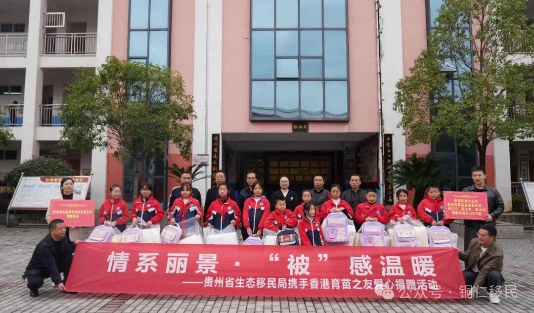 活动当天,省生态移民局代表与香港育苗之友爱心企业代表首先来到思南县文军希望小学,向该校的10余名学生捐赠了书包、棉被。