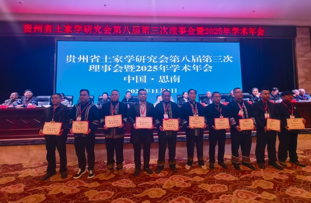 11月1日,贵州省土家学研究会八届三次理事会暨2025年学术年会在思南召开。贵州省土家学研究会会长晏世忠作工作报告,常务副会长代亮主持会议,副会长付江红作2025年科研工作专项报告,副会长兼秘书长李世凡宣读表彰决定。学会顾问戴振华、干正书讲话,学会顾问、特邀嘉宾出席会议。