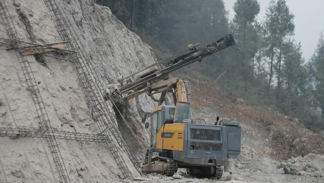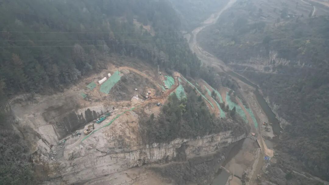 “目前,花滩子项目‘三通一平’及导流隧道工程已基本完成,右岸交通隧洞已正式通车,导流隧洞已具备过流条件。532县道改扩建已完成,主标已完成左右岸坝肩各两个台阶的开挖。主标枢纽工区的搅拌站已完成基建的百分80%,设备安装的70%,项目正在稳步推进。”中铁五局集团有限公司花滩子水库工程项目枢纽工区主管工程师黄学文介绍道。